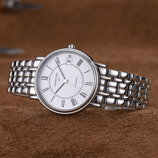 瑞士浪琴(LONGINES)手表瑰丽系列时尚男士自动机械表男表 L4.921.4.11.6银色钢带机械38.5mm